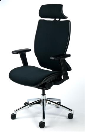 Főnöki szék, fejtámasszal, fekete szövetborítás, feszített szövet háttámla, alumínium lábkereszt, MAYAH "Crown"