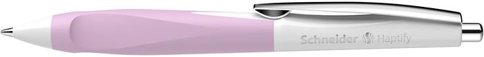 Golyóstoll, 0,5 mm, nyomógombos, fehér-rózsaszín tolltest, SCHNEIDER "Haptify", kék